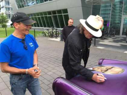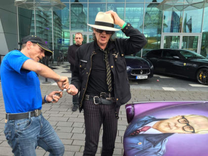Was das Gesamtbild meines Trabis natürlich noch perfektionieren würde, wäre ein Udogramm des Panikfamilienoberhauptes Udo Lindenberg auf der Motorhaube. Jeder, dem ich von meinem Traum erzählte, nannte mich einen Spinner und Träumer. „Lebe deinen Traum und tu‘ was dafü“ sagte ich mir und schrieb das Udo`s Managment an. Und 2016 wurde mein Traum wahr!