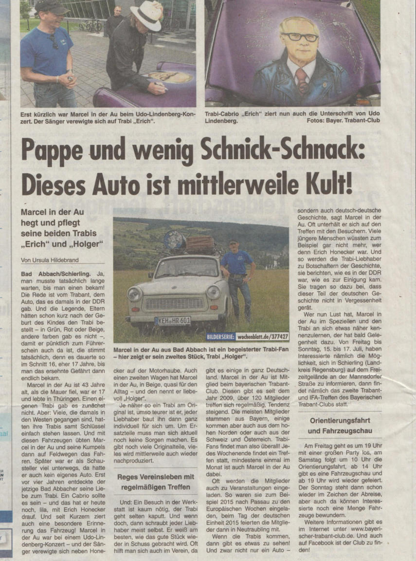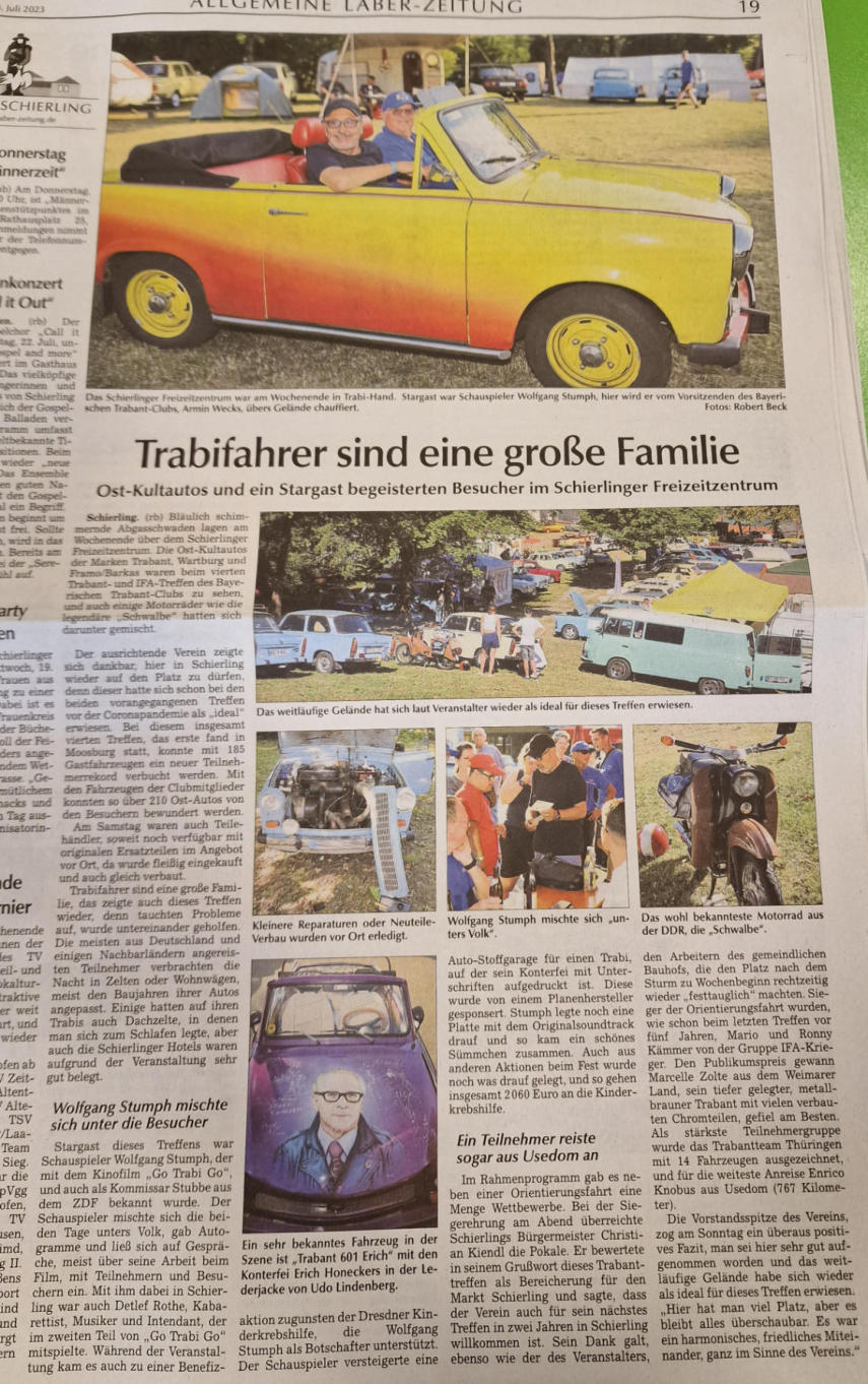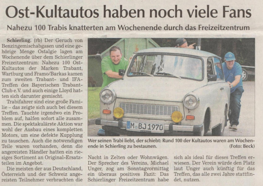 Einige Presseberichte über unsere Trabant- und IFA-Treffen in Schierling, die wir alle zwei Jahre stattfinden lassen…